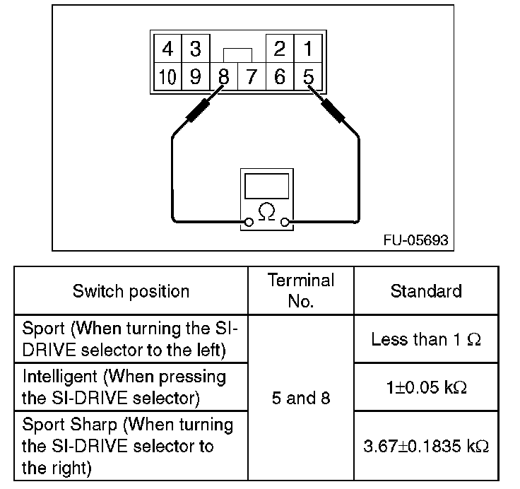 2. Check the resistance between the terminals at the SI-DRIVE selector.
