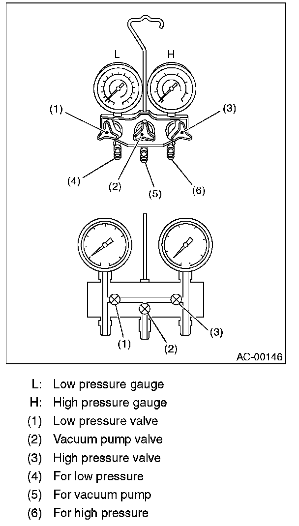 3. Make sure the valves on low/high pressure sides of manifold gauge set are fully closed.