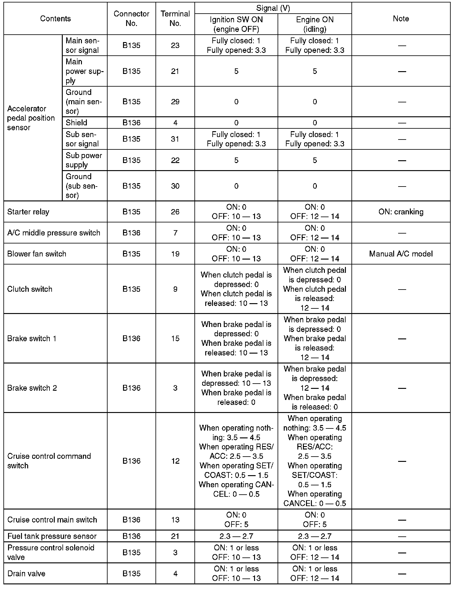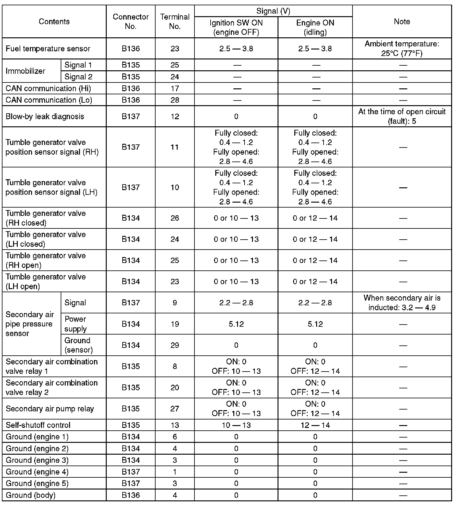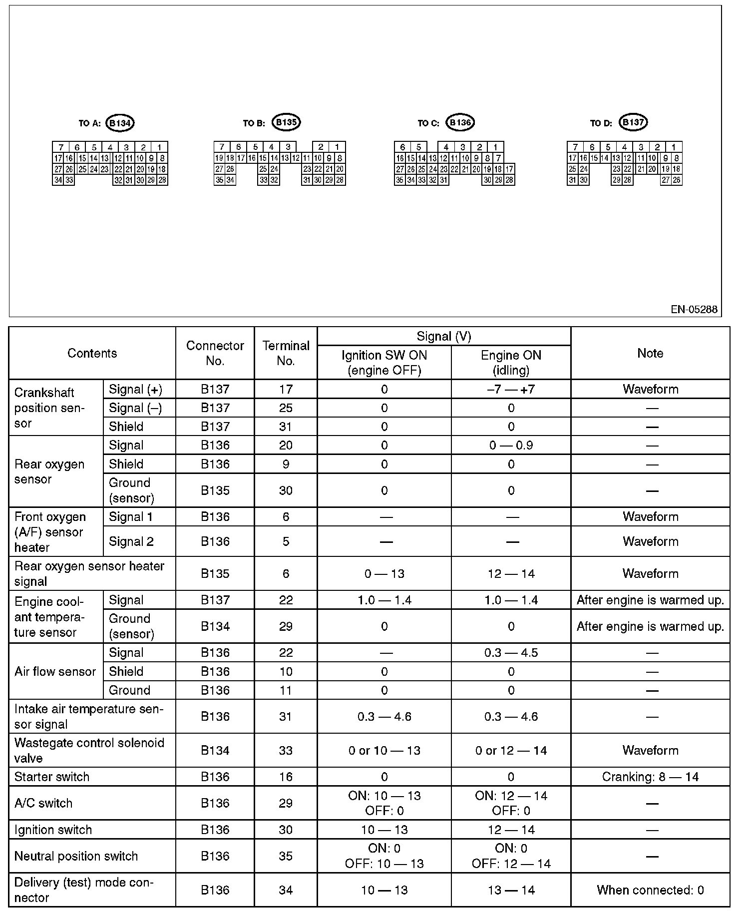 Pinout Values and Diagnostic Parameters