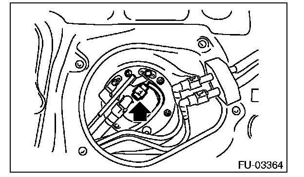 - Align protrusion (B) of the fuel sub level sensor to the cutout in the fuel sub level sensor upper plate.