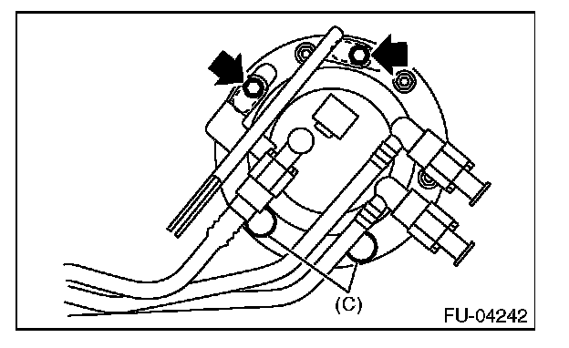 - After tightening, install the rubber cap (C) at the position shown in the figure.