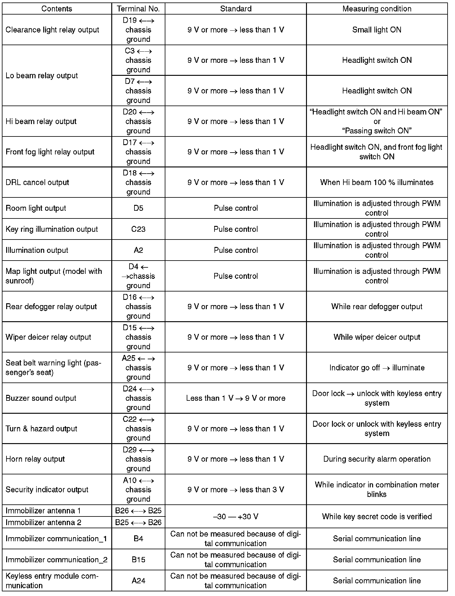 Pinout Values and Diagnostic Parameters