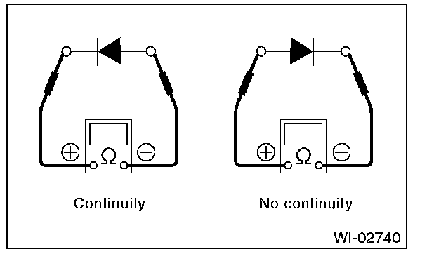 2. Use an ohmmeter to check for diode continuity. When contacting the negative lead to the diode positive side and the positive lead to the negative side, there should be continuity. When contacting the two leads in reverse, there should be no continuity.