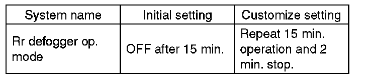 CAUTION: Check whether the "Rr defogger op. mode" setting is in initial setting or customize setting before performing inspection.