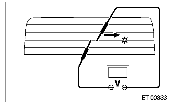 8. Move the tester probe on the negative (-) side slowly along the heat wire. If voltage changes from zero to several volts during movement of tester probe, heat wire is open at the voltage change point.