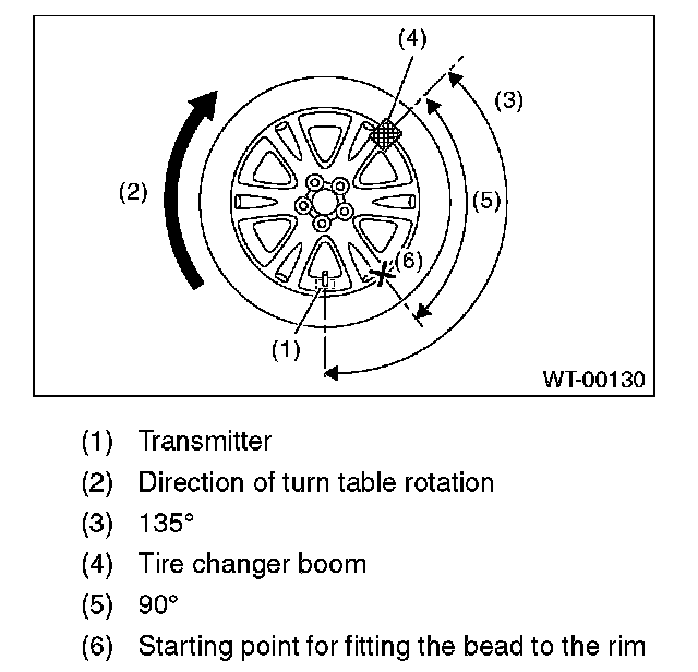 ^ To prevent damaging the transmitter, set the tire changer boom in the position as shown in the figure.