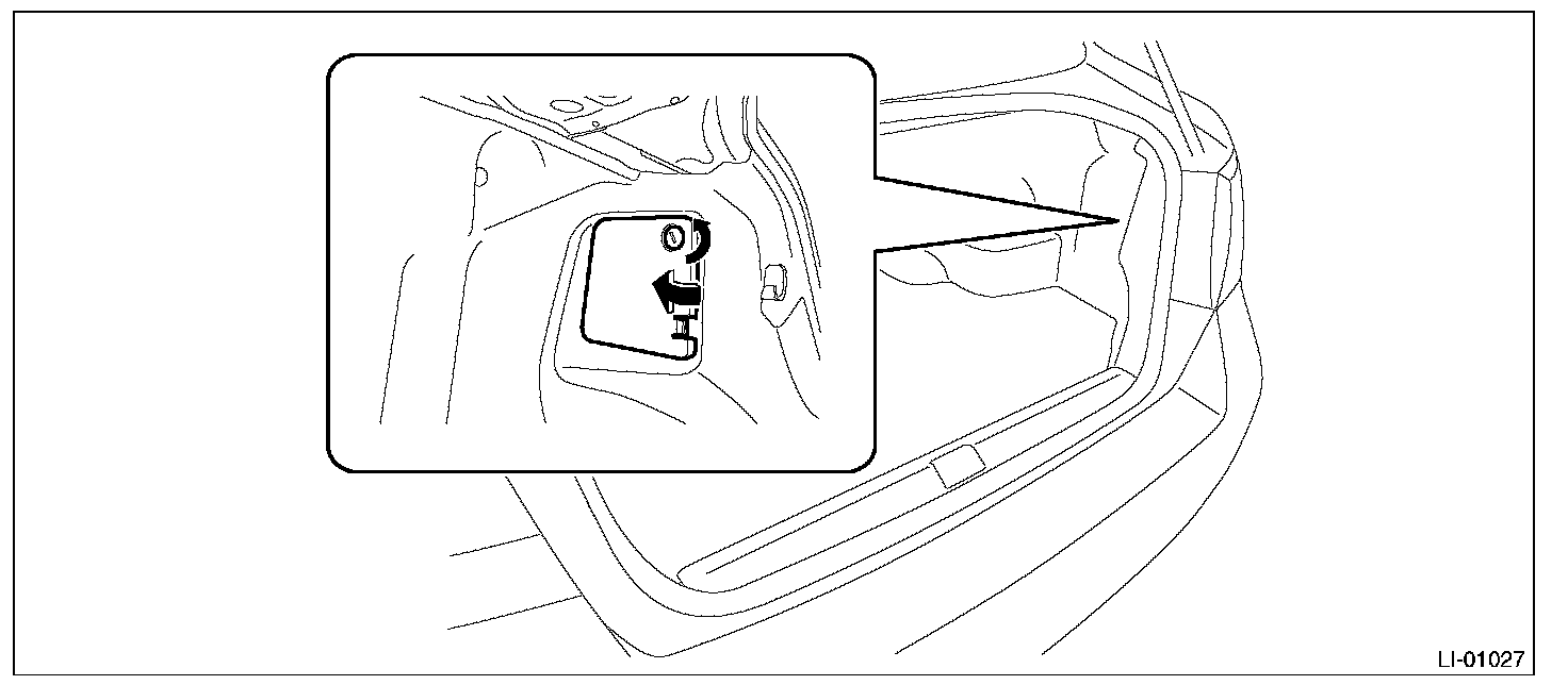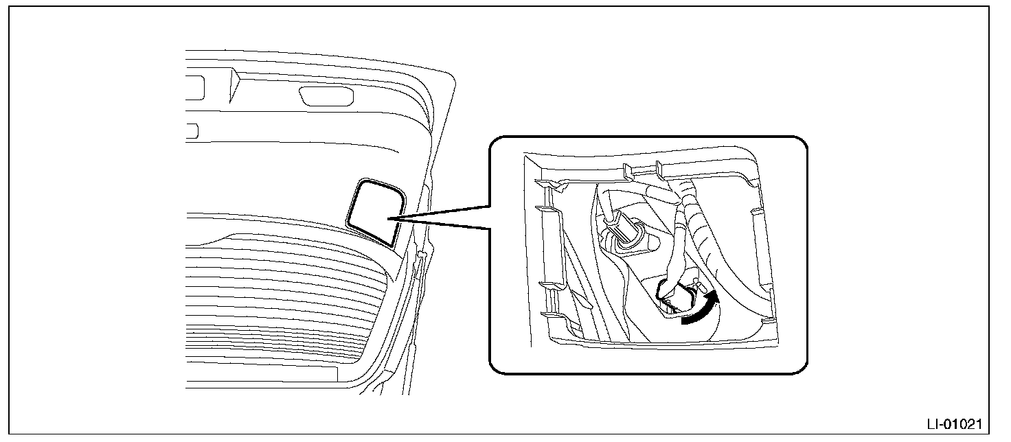 2. Release the lock and remove the bulb inspection cover of trunk room trim.