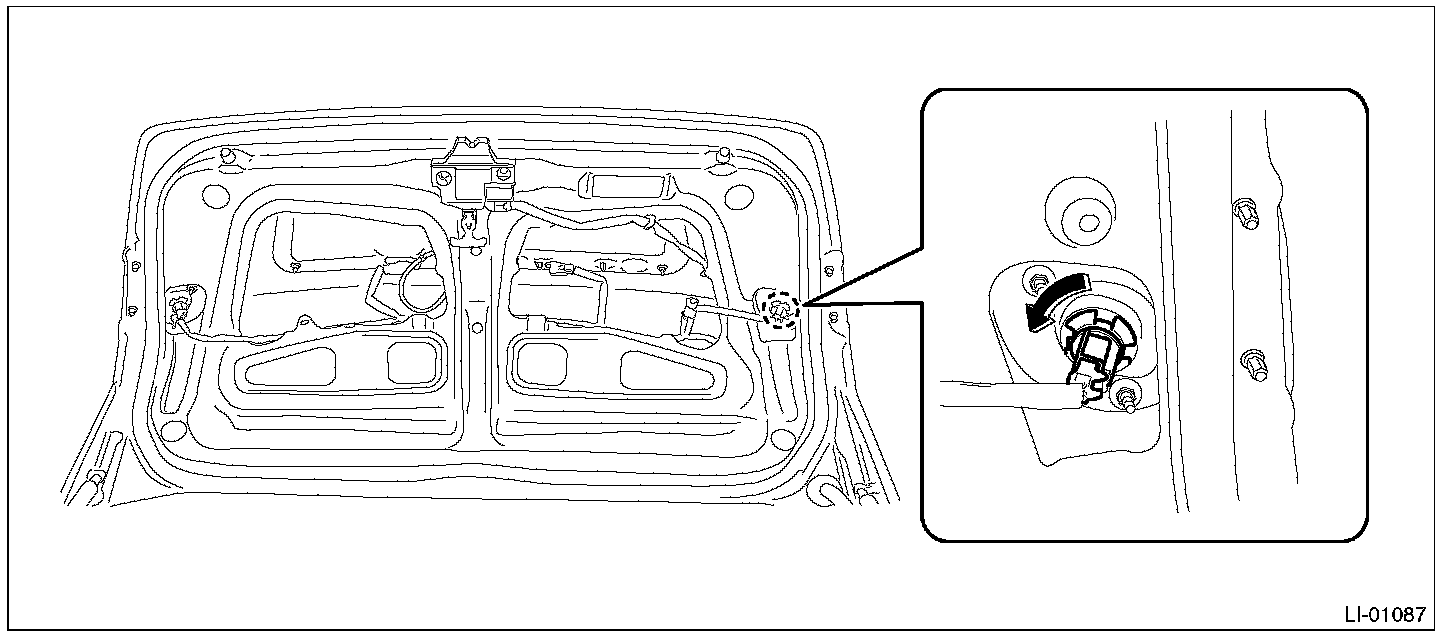 1. Release the claws and remove the bulb inspection cover of rear gate trim