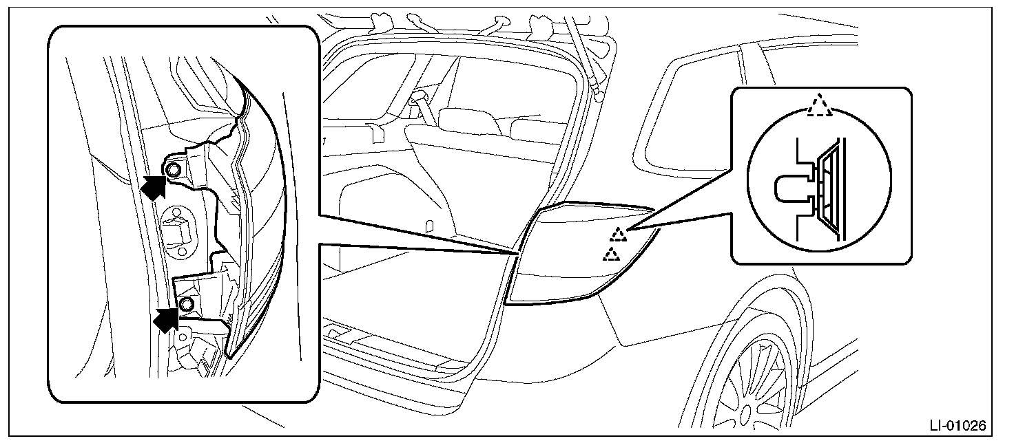 1. Release the bolts and clips, then pull out the rear combination light assembly to the vehicle rear.