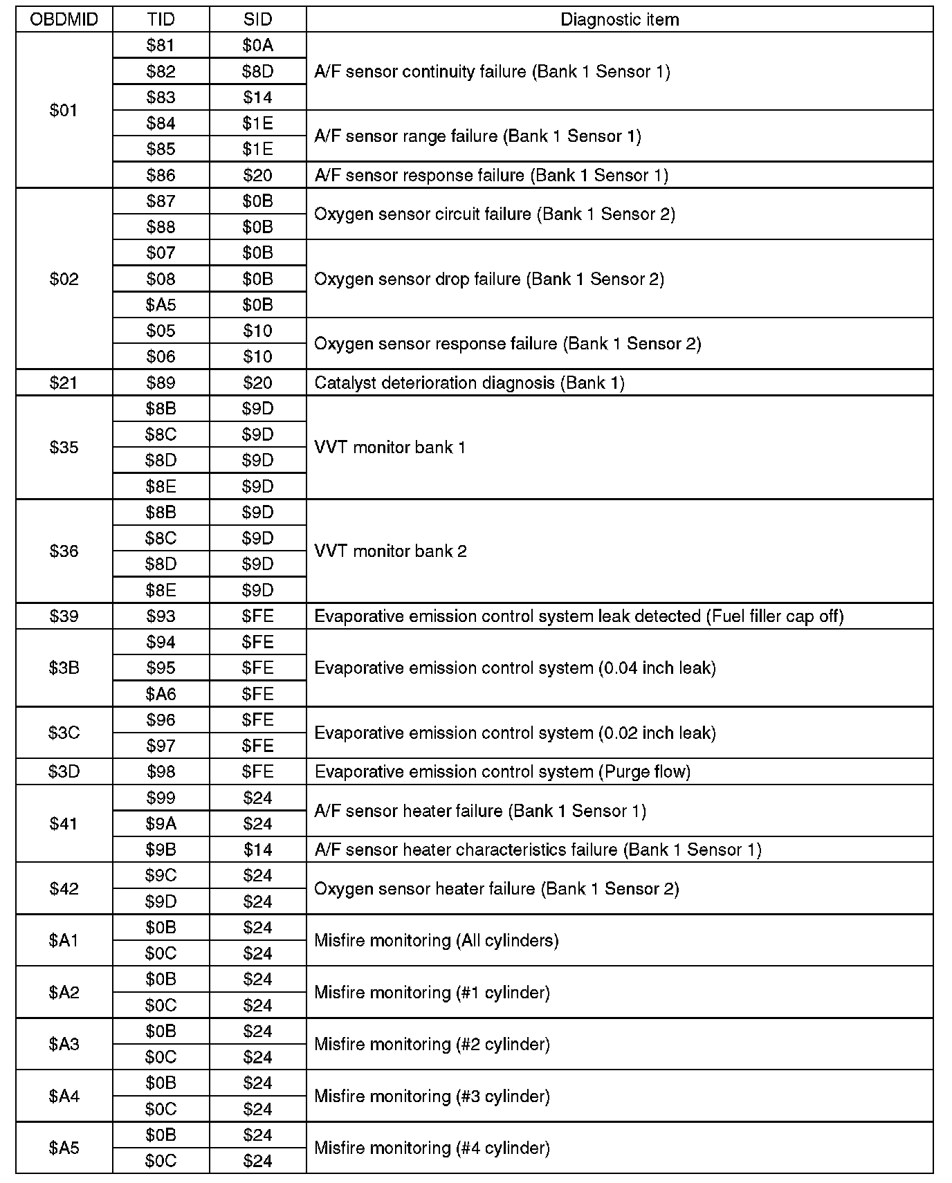 Refer to test value of troubleshooting and data of test limit indicated on the support data bit sequence table. A list of the support data is shown in the following table.