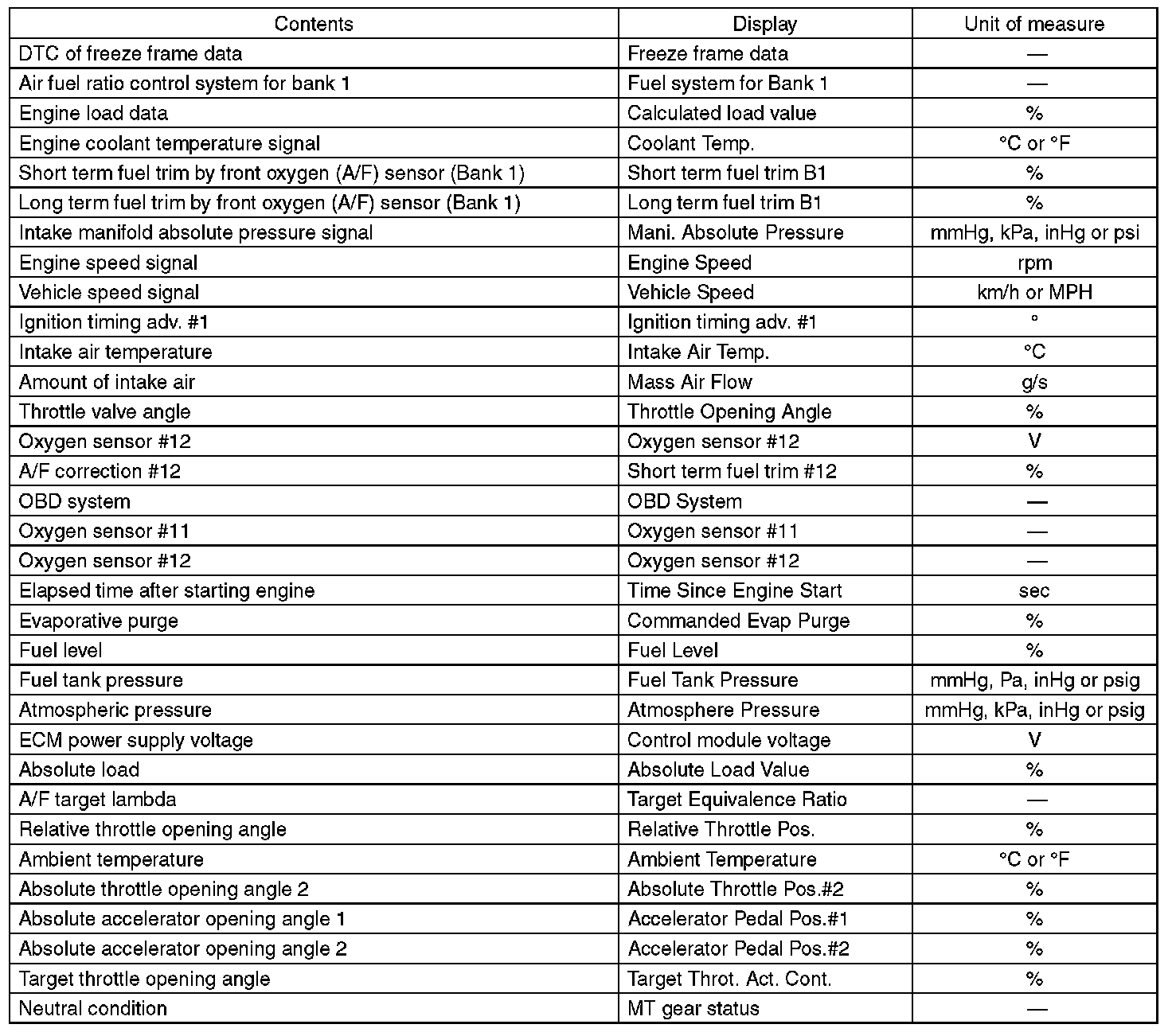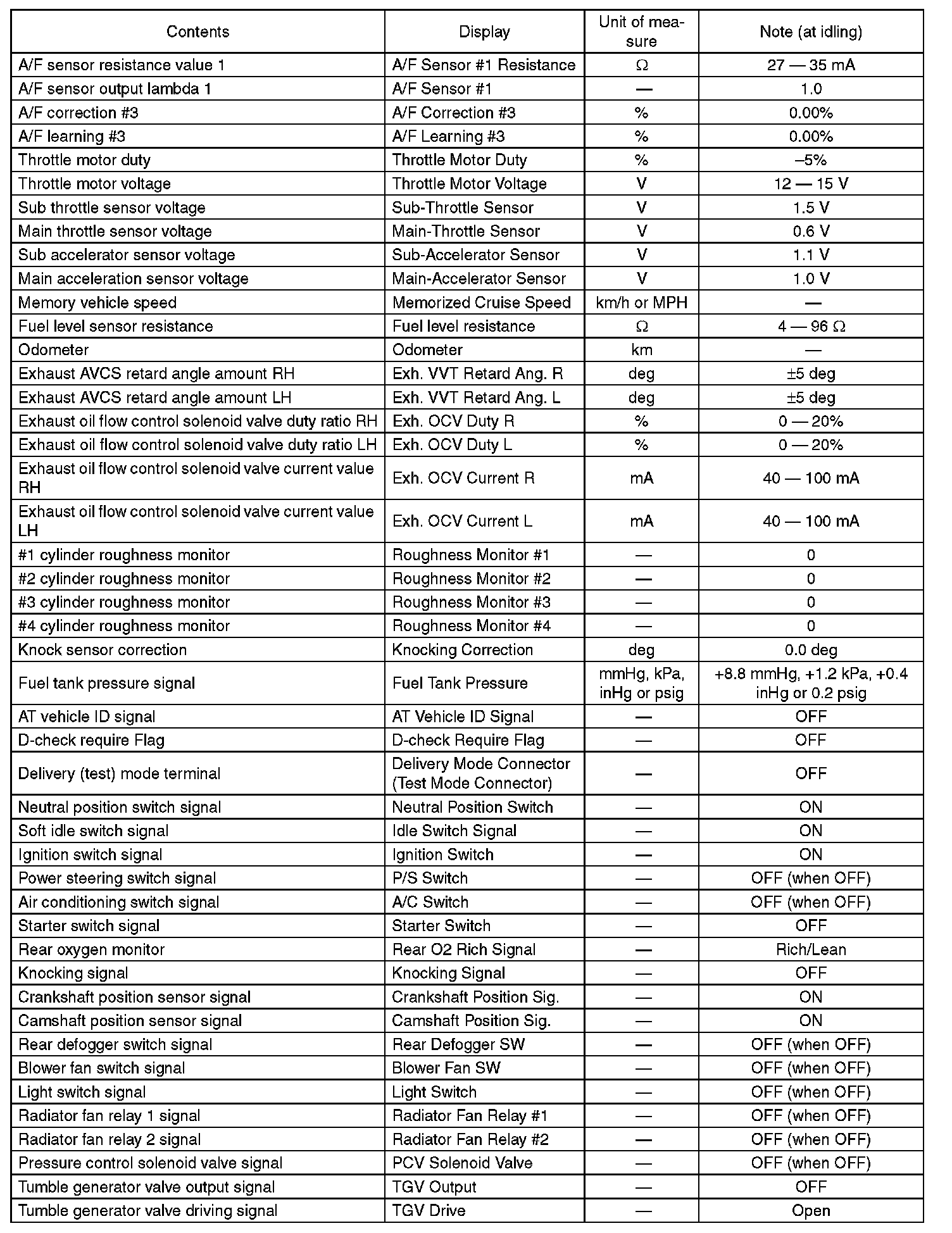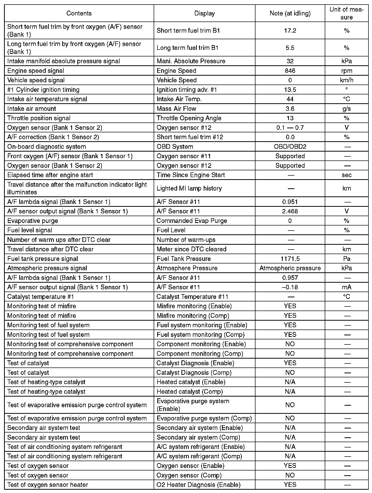 3. READ CURRENT DATA FOR ENGINE (OBD MODE)