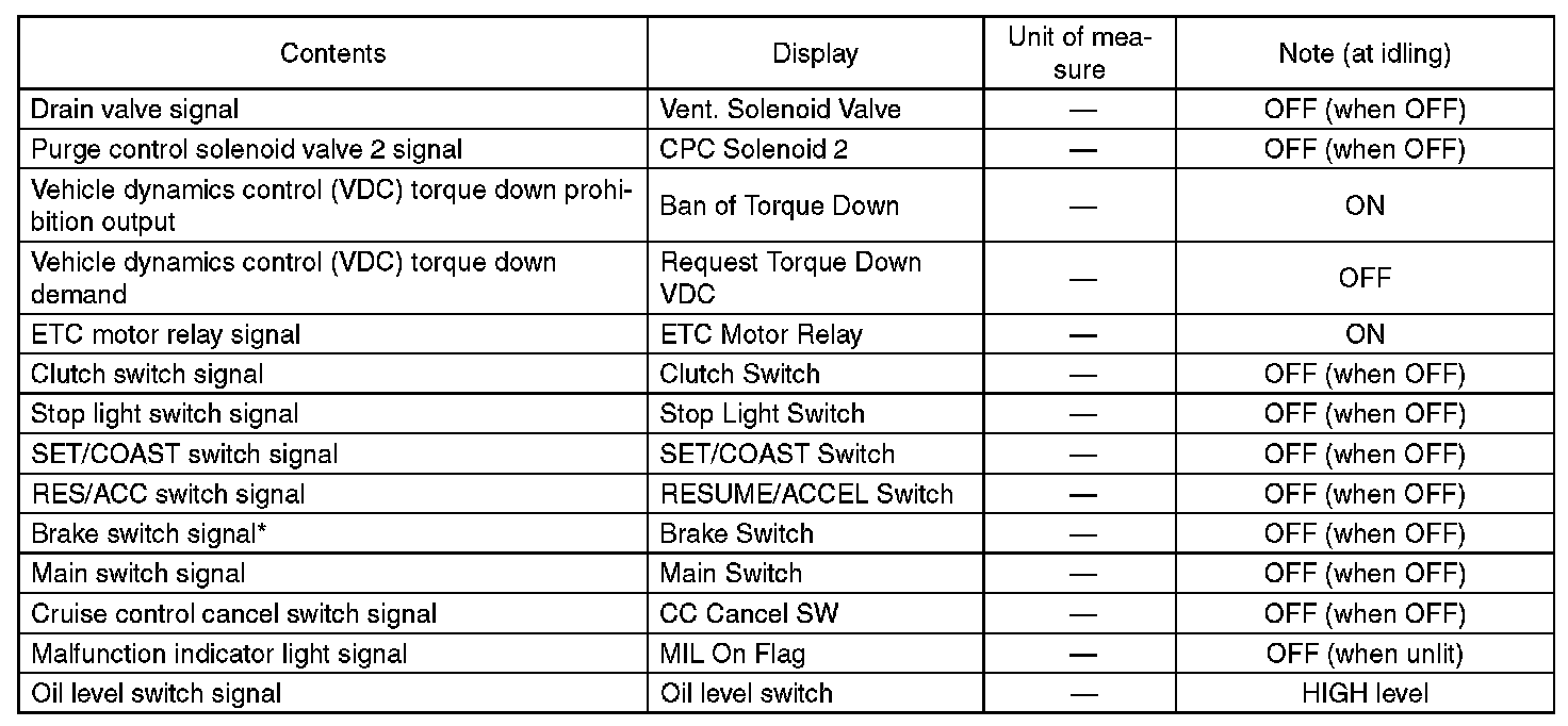 - *: For models without cruise control, the brake switch signal does not change.