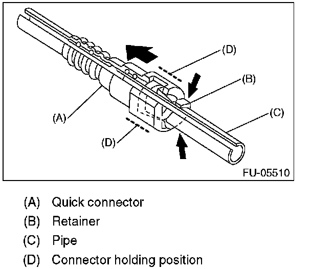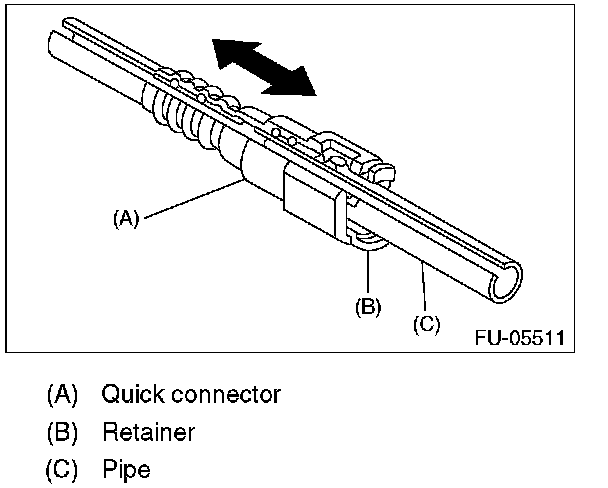 1. Push the retainer in the direction of the arrow, disconnect the quick connector from pipe.