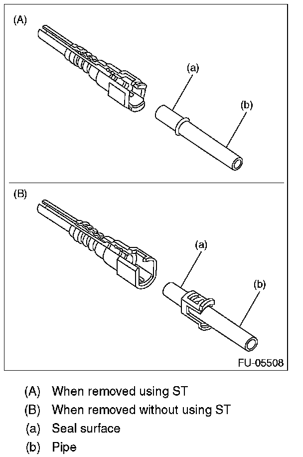 - If the connector and pipe are sticking to each other, push and pull the connector with ST pushed, and then pull the connector after it started moving freely.
