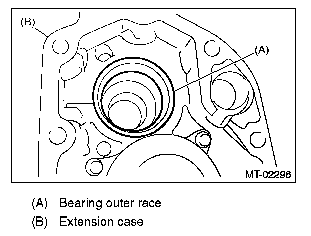 2) Remove the bearing outer race and thrust washer from the extension case.