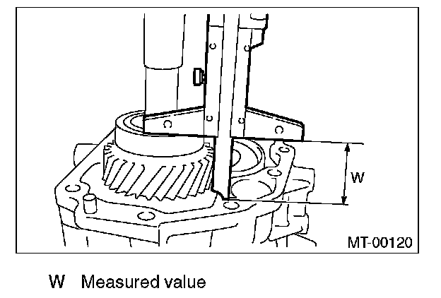 4) Measure the height "W" between transfer case and taper roller bearing on the transfer driven gear.