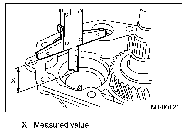 5) Measure depth "X" on bearing insertion part of the extension case.