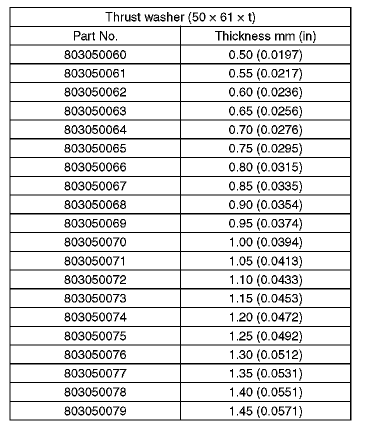 12) Calculate the thrust washer thickness "U" using the following calculation.