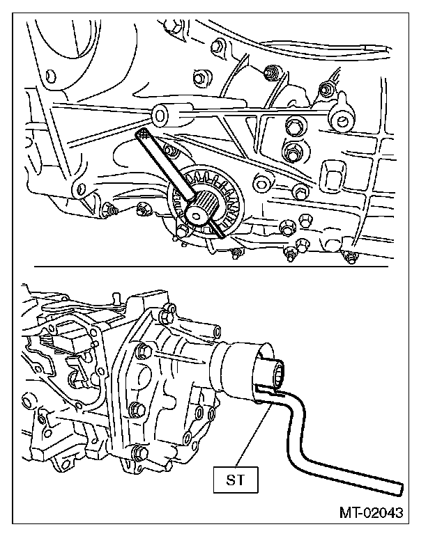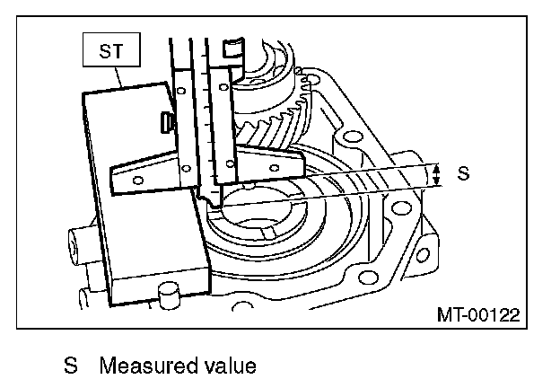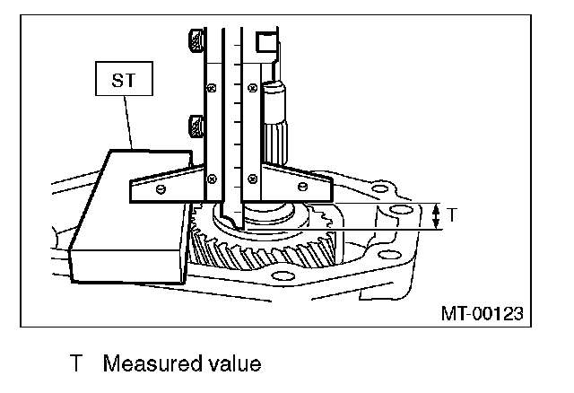 11) Measure the height "T" between the extension case and transfer drive gear.