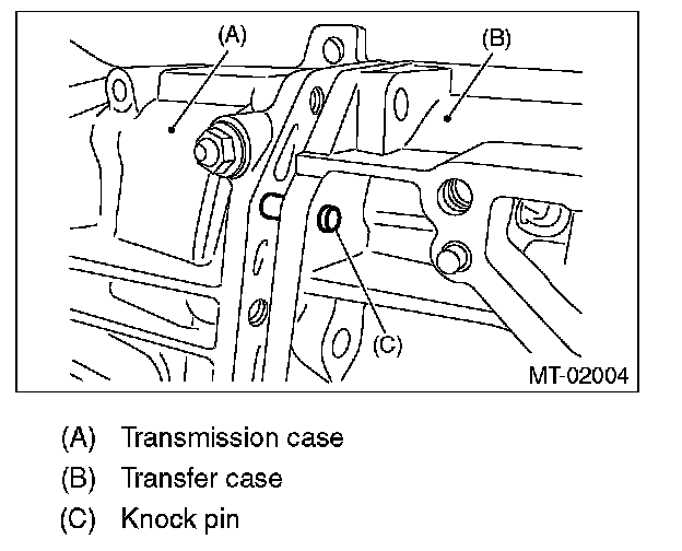 Push the transfer case assembly until the knock pin protrudes slightly from the transfer case.