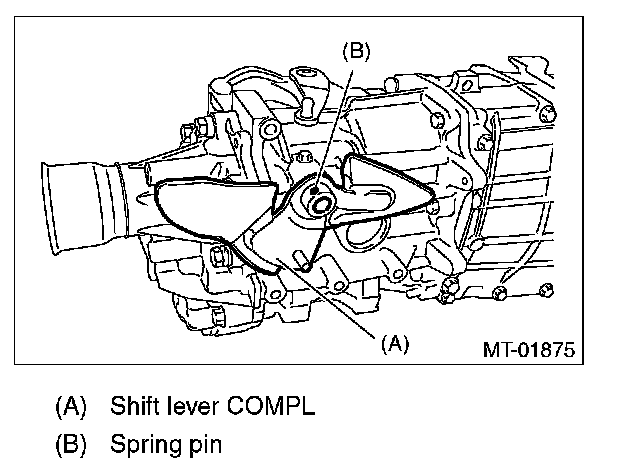 4) Use the ST to push out the spring pin and remove the shift lever COMPL from shifter arm No. 2.