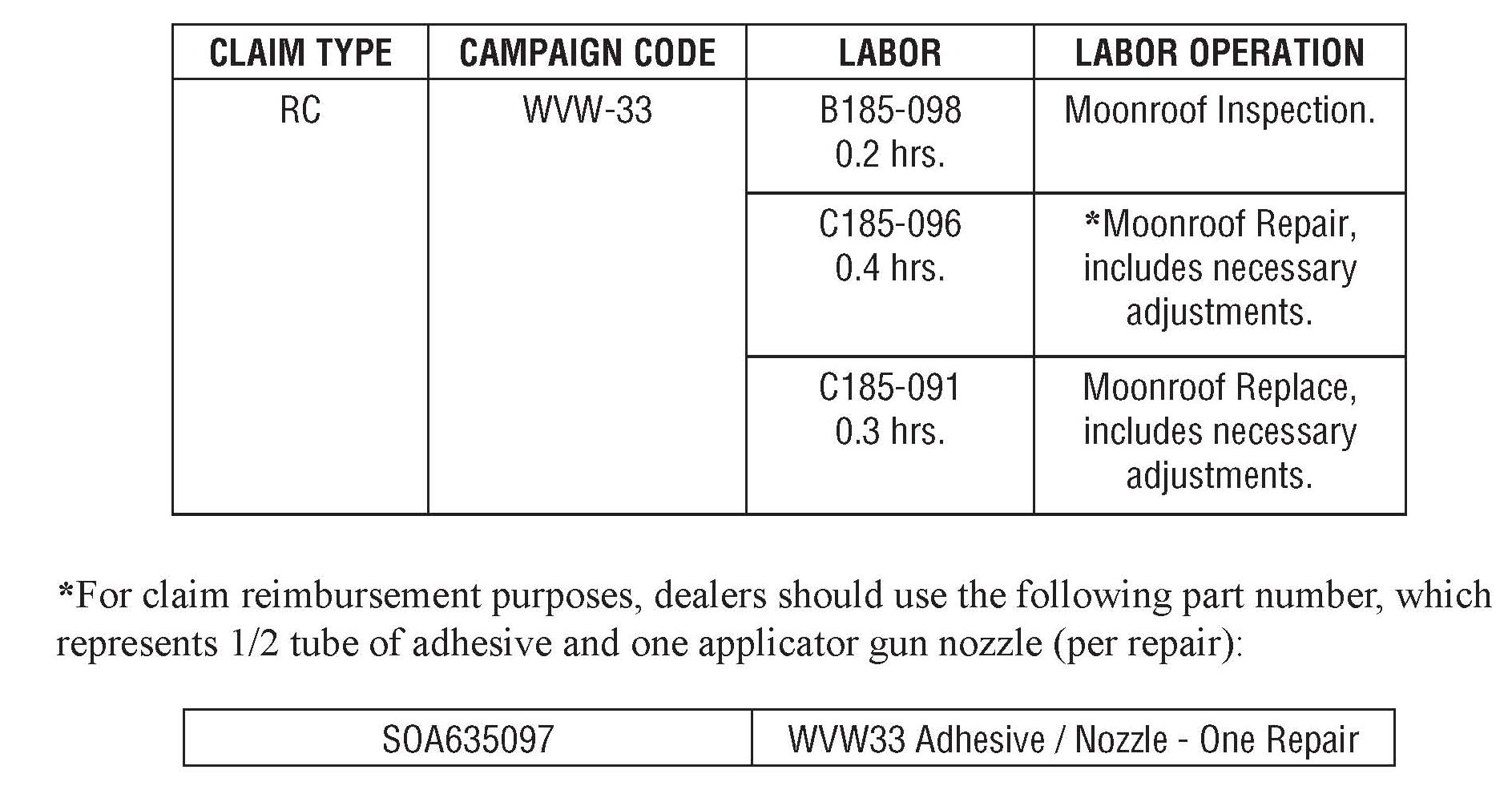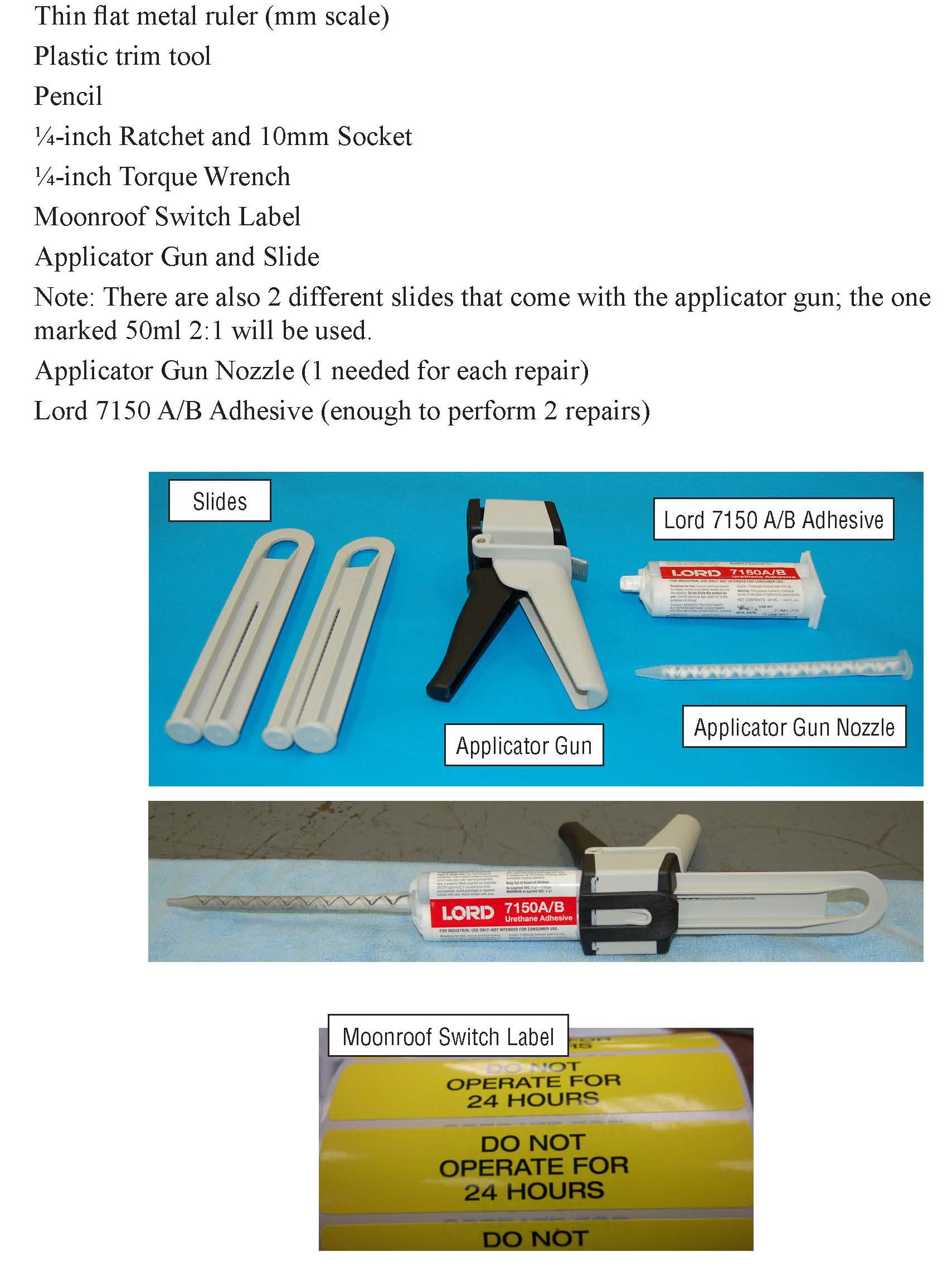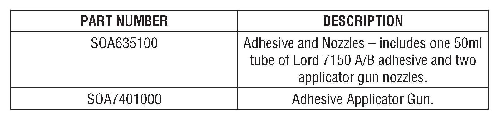 For claim reimbursement purposes, dealers should use the following part number, which represents 1/2 tube of adhesive and one applicator gun nozzle (per repair):