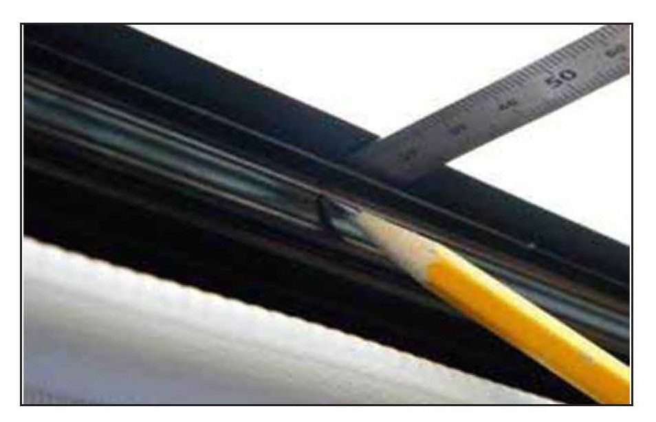 Slide the ruler along the bead until you can locate the other end of the urethane bead Place a small mark on the frame to mark that position.