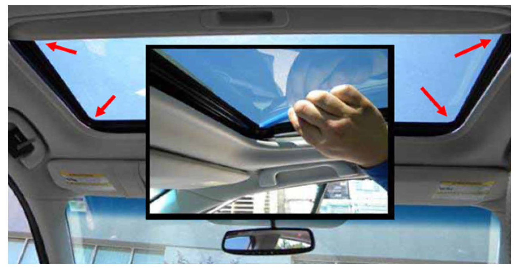 1) Using a plastic trim tool, check all four corners of the moonroof glass.