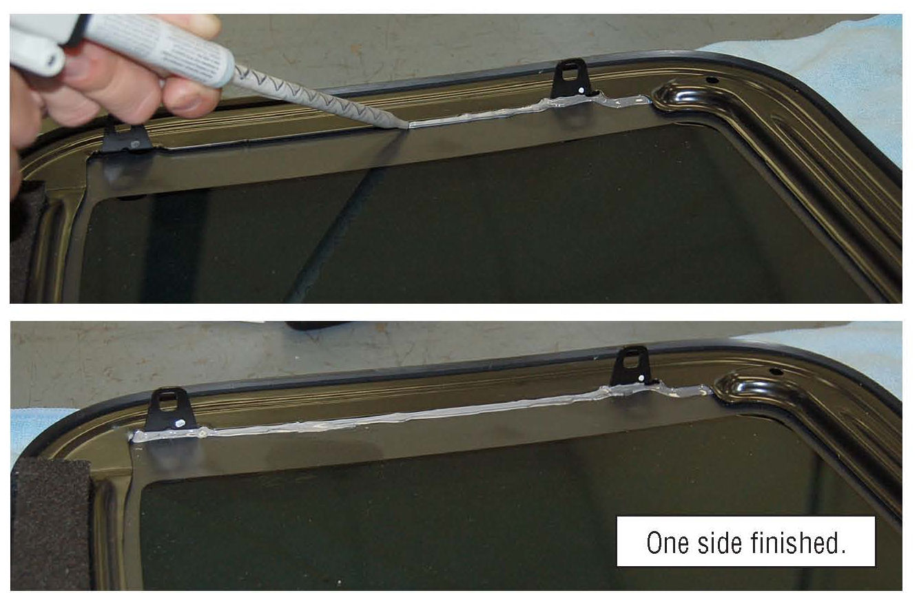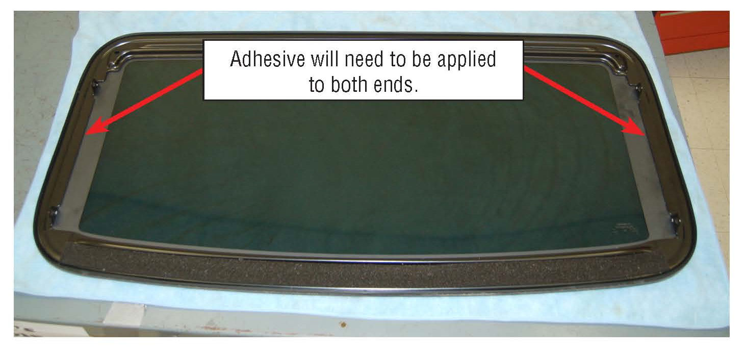 The moonroof glass must be removed from the vehicle to perform the following procedure. DO NOT attempt to apply adhesive with the moonroof glass installed in the vehicle The adhesive will not bond as intended