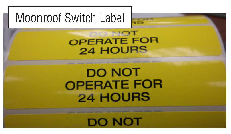 9) Moonroof glass must not be opened for at least 24 hours. Install label* over switch to remind the customer.