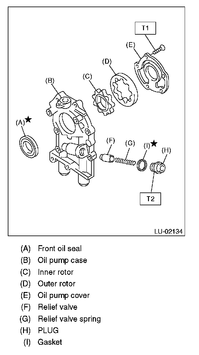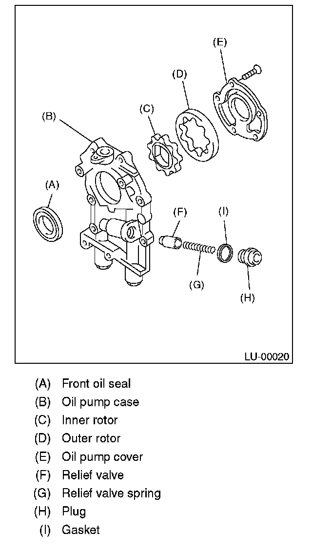 DISASSEMBLYRemove the screw which secures oil pump cover and then disassemble oil pump. Inscribe alignment marks on the inner and outer rotors so that they can be replaced in their original positions during reassembly.