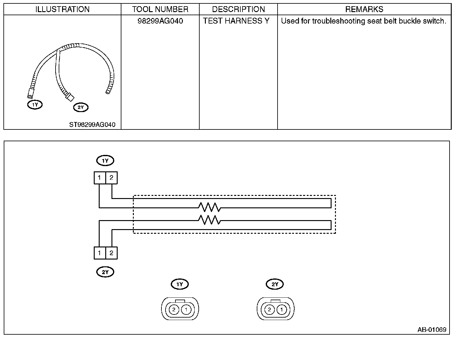 PREPARATION TOOLCAUTION: To measure the voltage and resistance of airbag system and occupant detection system components, be sure to use the specified test harness.