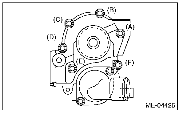 When installing the water pump, tighten the bolts in two stages in alphabetical sequence as shown in figure.