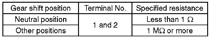 3) Measure the resistance between neutral position switch terminals.