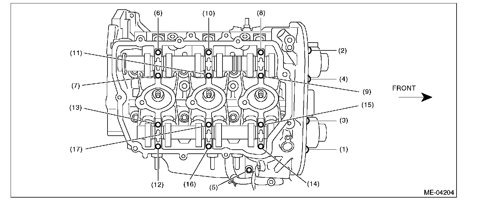 (3) Gradually tighten the camshaft cap in at least two stages in the numerical order shown in the figure, then tighten to specified torque.