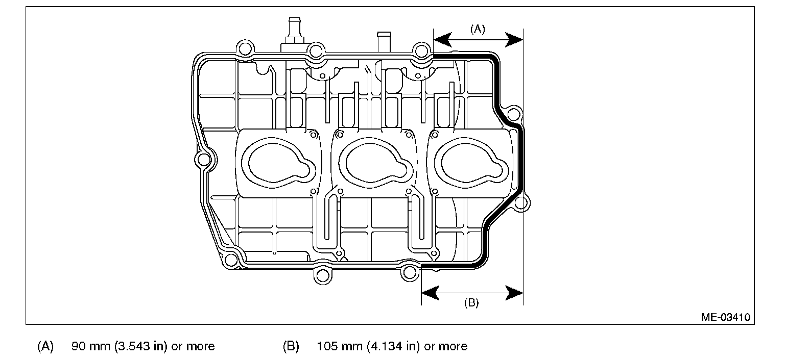 (2) Apply liquid gasket sparingly to the mating surface of cylinder head and rocker cover as shown in the figure.