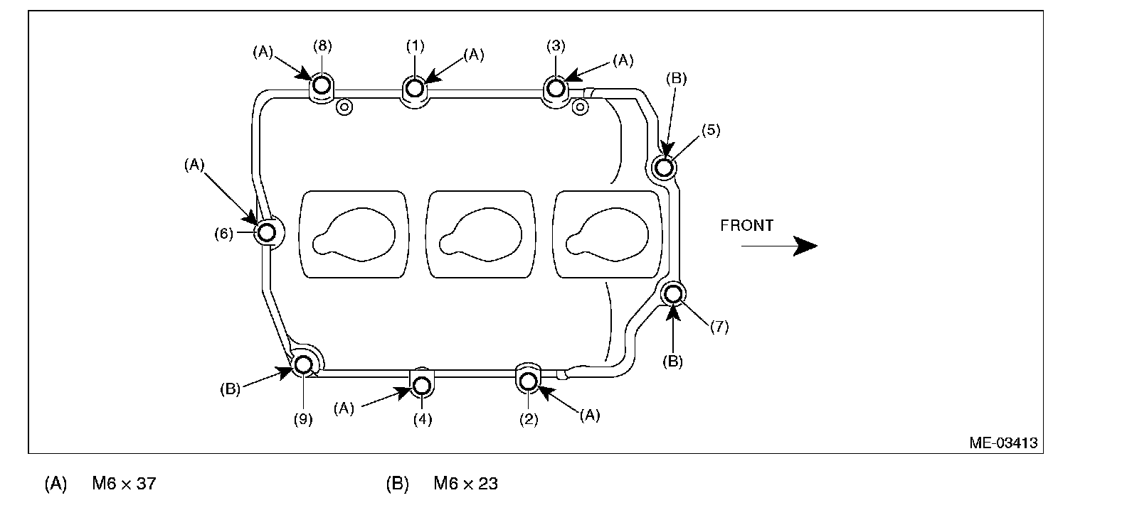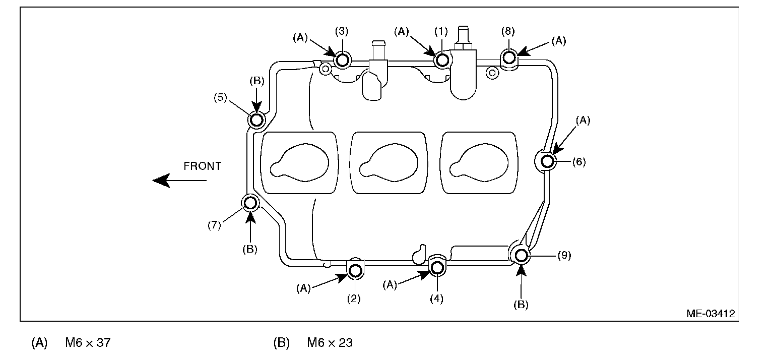(3) Tighten the rocker cover bolts in the numerical order as shown in the figure.
