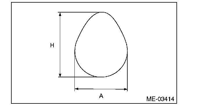 5) Measure the cam lobe height "H" and cam base circle diameter "A". If it exceeds the standard or offset wear occurs, replace it.