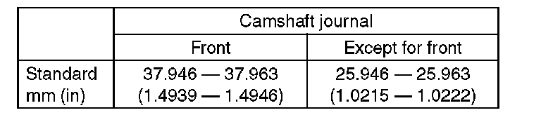 6) Measure the outside diameter of camshaft journal. If the journal diameter is not within specification, check the oil clearance.