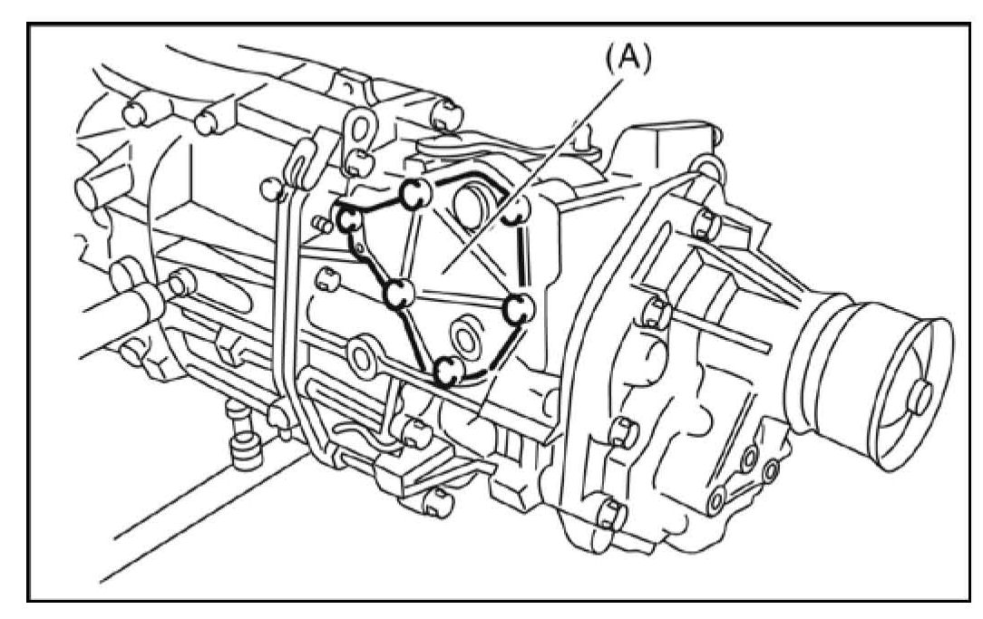 9) Remove transmission cover (A) carefully as there is a spring and plunger on the backside of the cover. Be careful not to drop the spring and plunger.