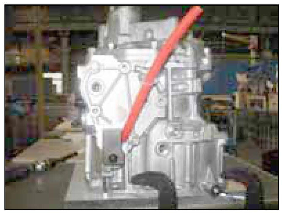 15) Install the jig to the transfer case and secure with 2 bolts, one at the top and one at the bottom of the jig.