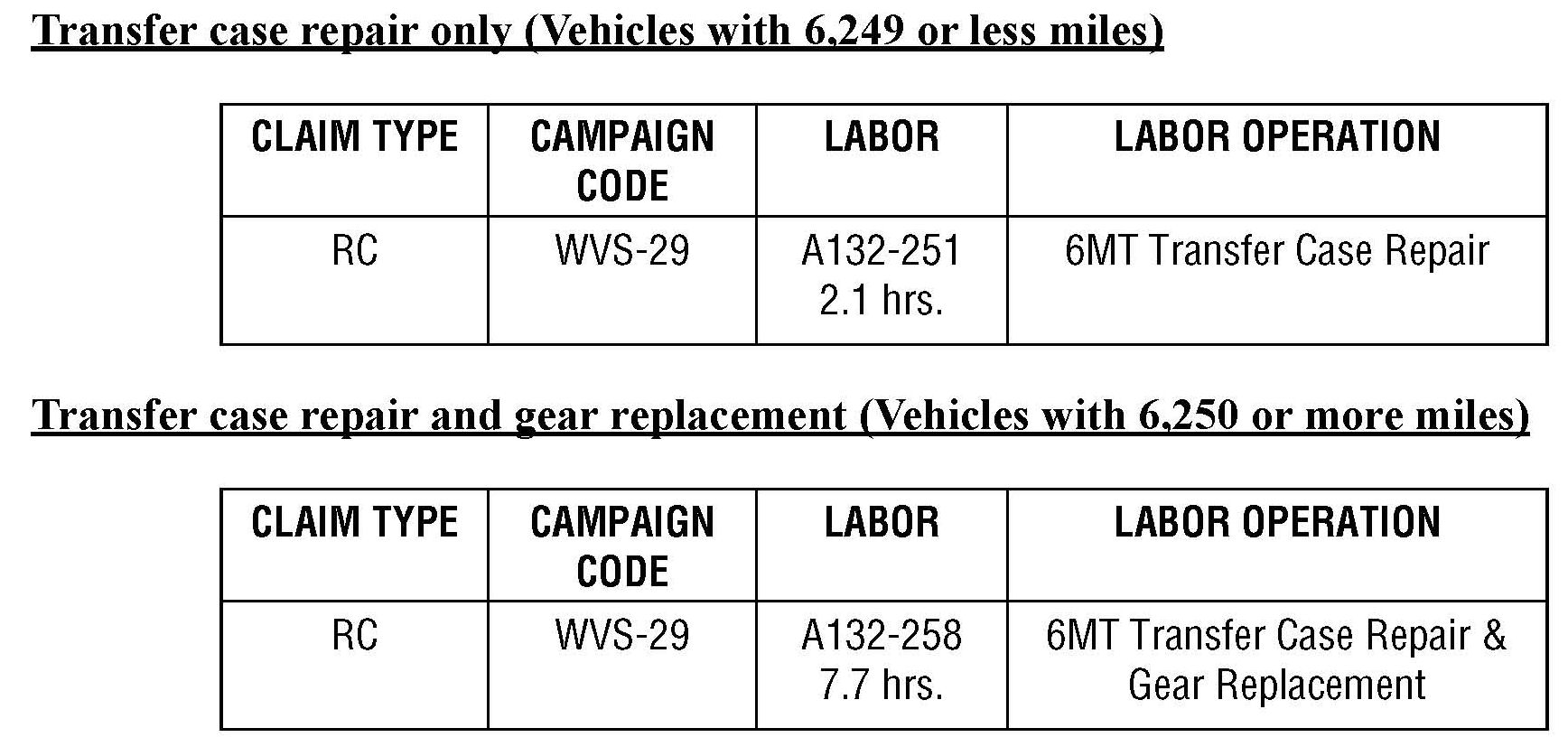 Additionally, affected vehicles with 6,250 or more miles will require replacement of the main shaft and 3rd through 6th gear set.