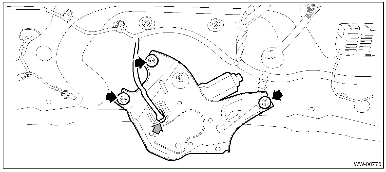 2. Remove the bolts, and then remove the wiper motor assembly.