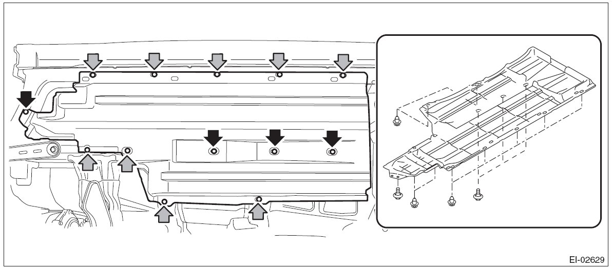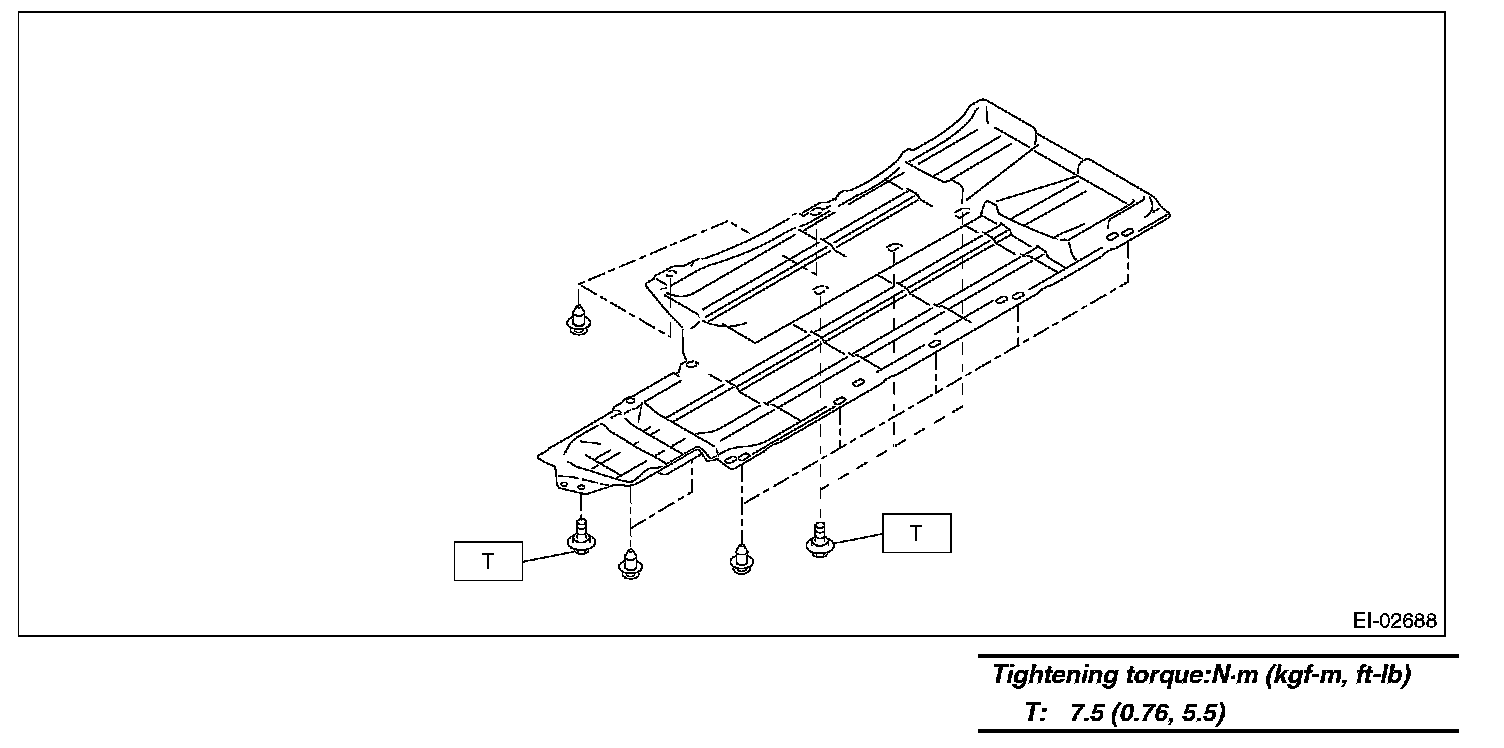 Tightening torque: Refer to "COMPONENT" of "General Description". [Ref. to FLOOR UNDER PROTECTOR, COMPONENT, General Description.]
