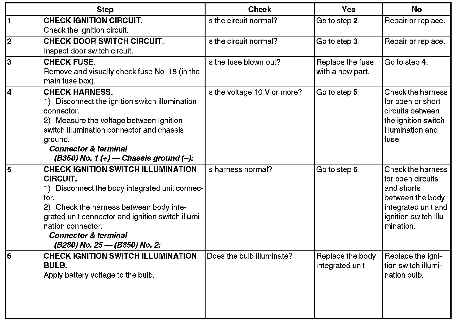 Check Ignition Switch Illumination
