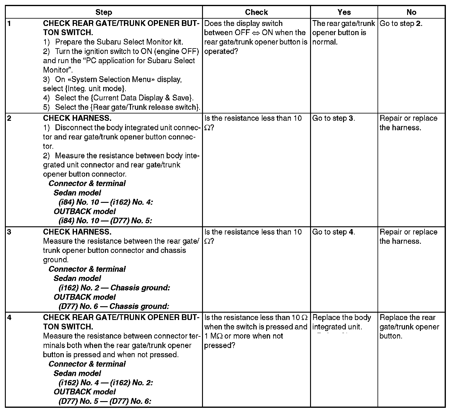 CHECK REAR GATE/TRUNK OPENER BUTTON SWITCH CIRCUIT