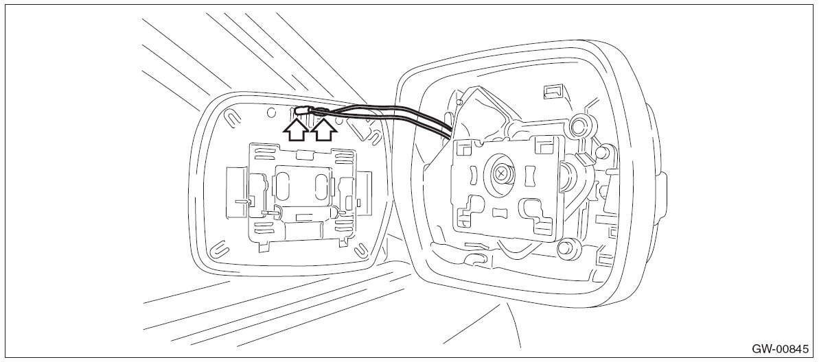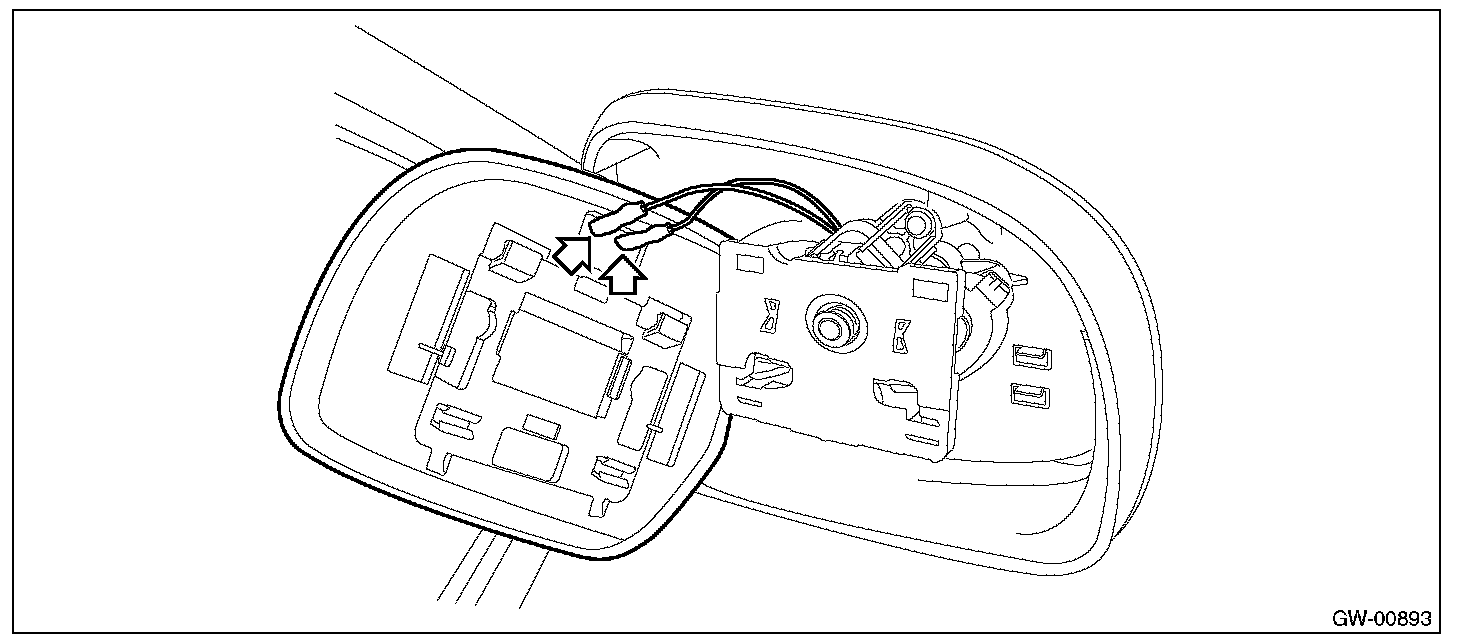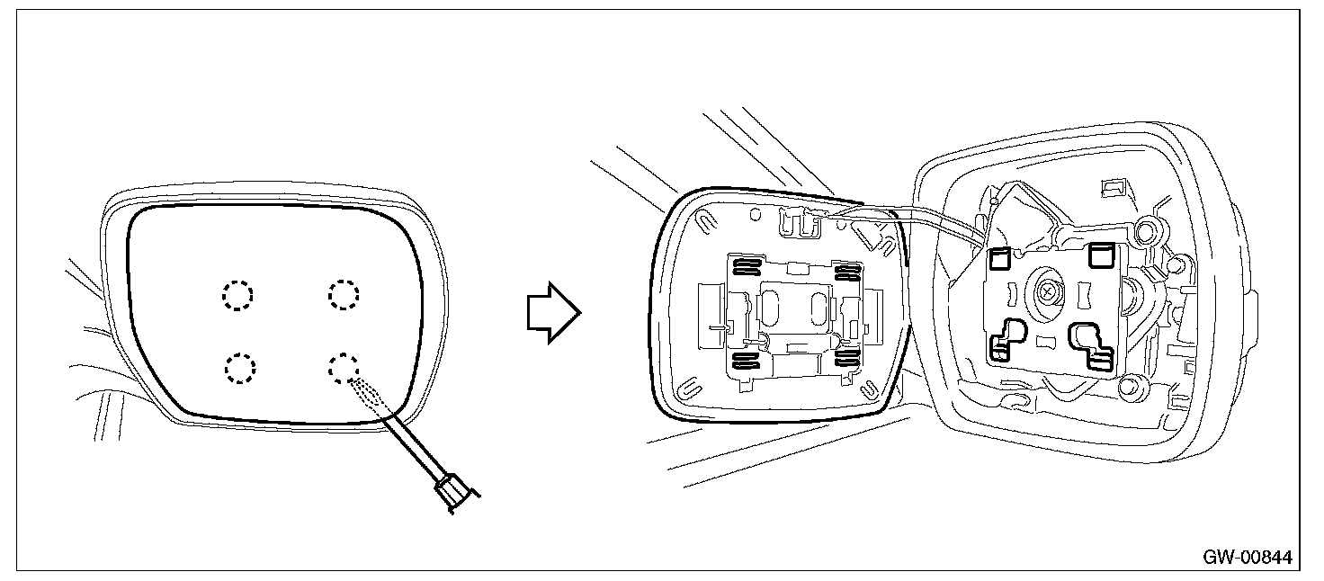 2. Disconnect the mirror heater connector. (Model with mirror heater)