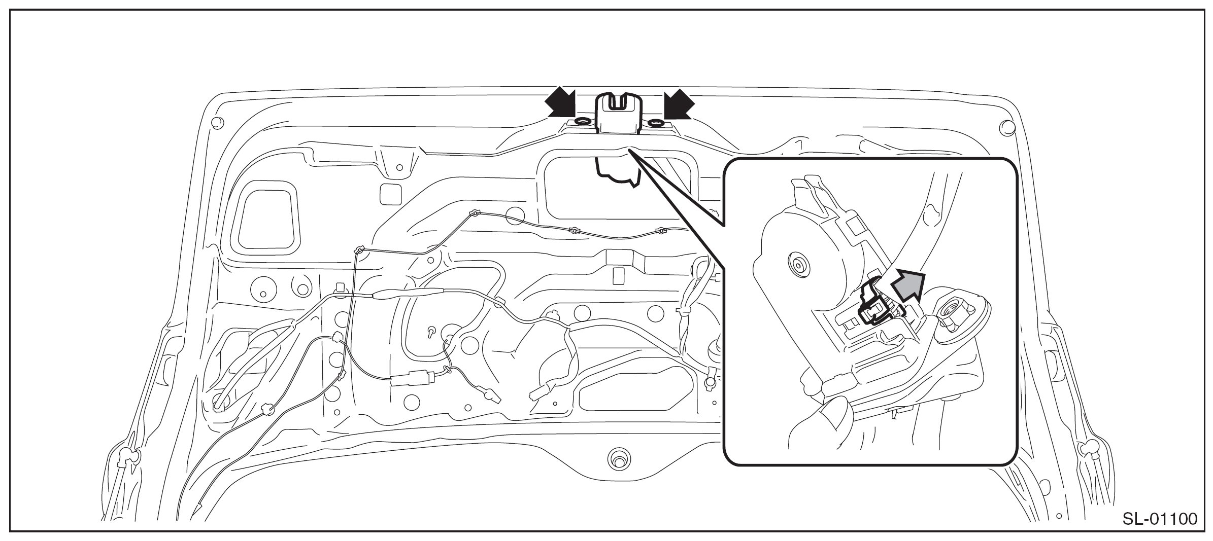 1. Remove the bolts and pull out the rear gate latch & actuator assembly to the vehicle front.