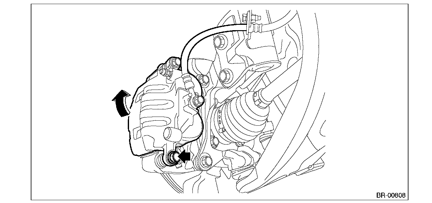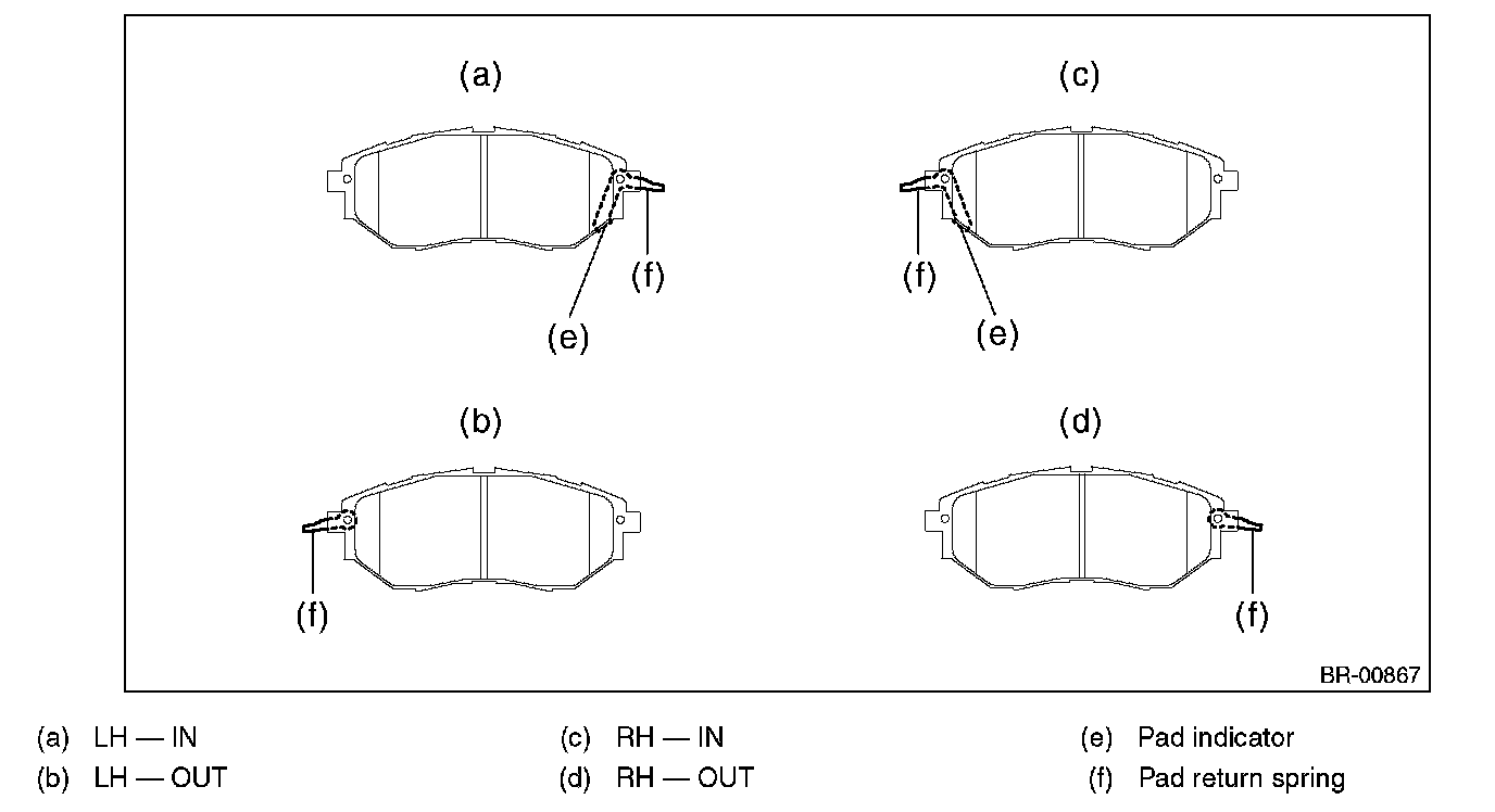 ^ If the pad return spring is deformed or damaged, replace the brake pad.