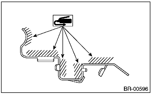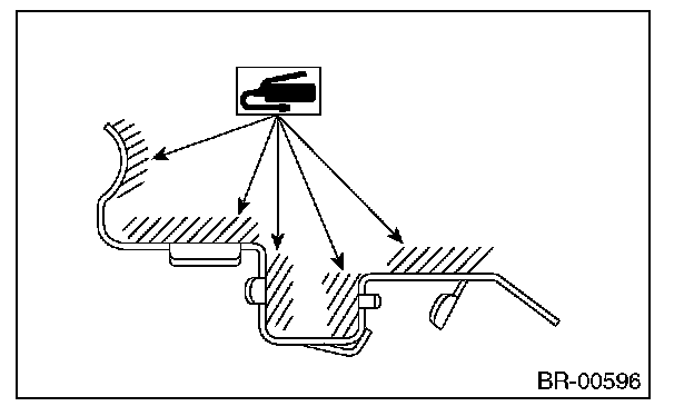 2) Apply a thin coat of Molykote M7439 (Part No. 003602001) or grease contained in the pad kit to the pad clip.